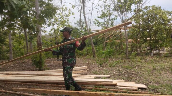 Babinsa Koramil 02/Walakaka Turun Tangan Bantu Pembangunan Rumah Warga di Kabukarudi