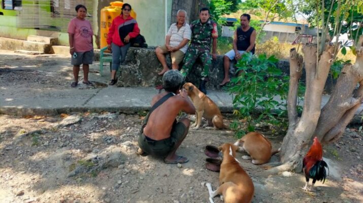 NTT-KUPANG, — Babinsa Kelurahan Kuanino Koramil 1604-01/Kupang, Sertu Sony Blegur, bersama Lurah Kuanino dan tim vaksinasi rabies dari Rumah Sakit Kota Kupang melaksanakan pemantauan