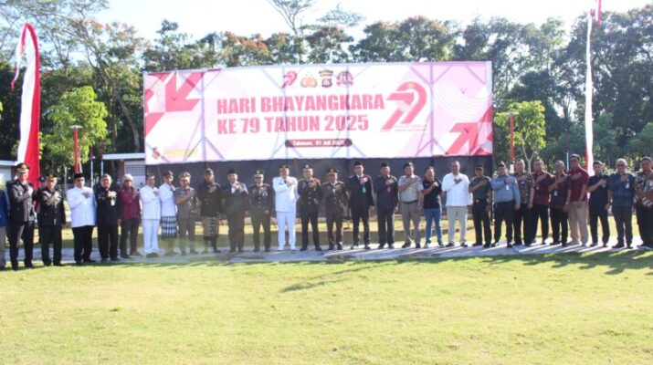 Tabanan – Dalam rangka memperingati Hari Bhayangkara ke-79, Dandim 1619/Tabanan Letkol Inf Riza Taufiq Hasan, S.I.P., M.I.P., menghadiri upacara yang diselenggarakan di Lapangan Dangin