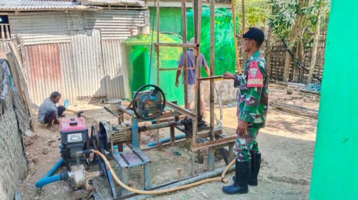 SUMBA BARAT – Dalam rangka mendukung ketersediaan air bersih bagi masyarakat, Babinsa Koramil 01/Loli Kodim 1613/Sumba Barat, Sertu Husni Harianto, melaksanakan pendampingan kegiatan pengeboran