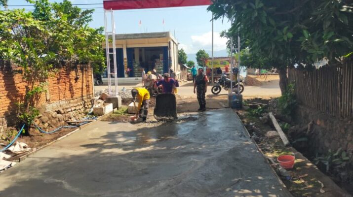 Wujud Transparansi, Babinsa dan Kepala Desa Hu’u Pantau Langsung Proyek Rabat Gang