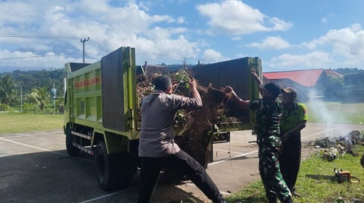 Wujud Kepedulian Lingkungan, Babinsa Tegalinggah Turut Sukseskan Pemangkasan Pohon Enau