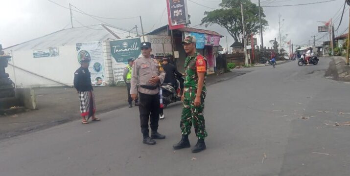 Bangli – Dalam rangkaian upacara Piodalan Purnama Sasih Kasa, Babinsa Desa Batur bersama Bhabinkamtibmas serta Pecalang Desa Adat Batur melaksanakan pengamanan prosesi Ida Batara-Betari