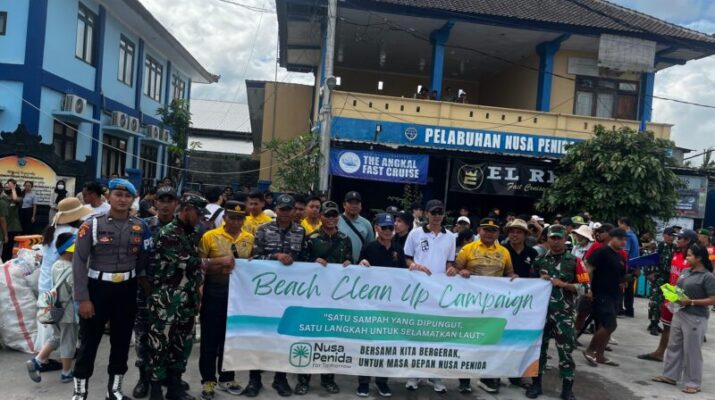 Klungkung,- Dandim 1610/Klungkung Letkol Kav Sidik Pramono, S.Sos.,M.M.,M.Han. mendampingi Bupati dan Wabup Klungkung menghadiri dan meresmikan Beach Clean Up Campaign di Pelabuhan Banjar Nyuh,