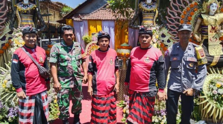 KARANGASEM – Babinsa Desa Bugbug Koramil 1623-01/Karangasem Koptu Gede Mudana bersinergi melaksanakan pengamanan rangkaian upacara Usaba Manggung serta pementasan tarian hiburan Bondres, di Wantilan
