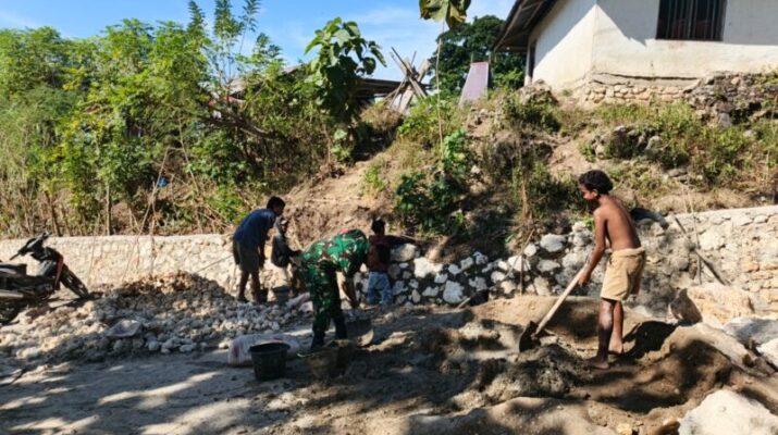 SUMBA BARAT – Babinsa Koramil 02/Walakaka Kodim 1613/Sumba Barat, Praka Umbu Hasan, melaksanakan pemantauan terhadap proses pembangunan jalan menuju kawasan wisata Air Terjun Lapopu