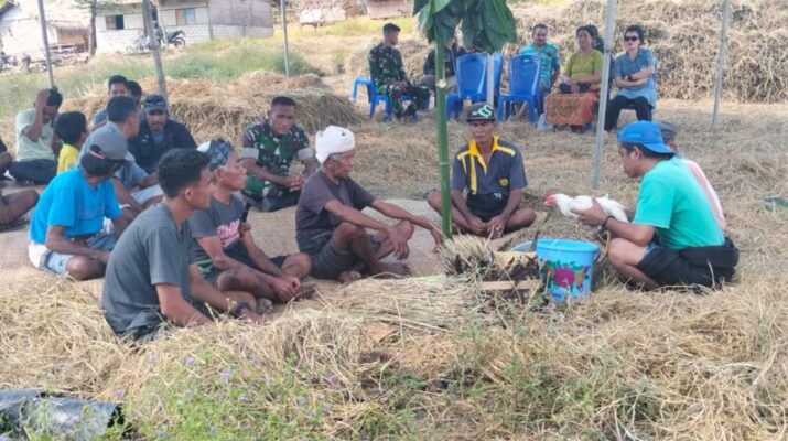 SUMBA TENGAH — Wujudkan kemanunggalan TNI dan rakyat, Komandan Kodim 1613/Sumba Barat Letkol Inf Ignasius Hali Sogen, S.E., M.Han., ikut serta dalam kegiatan perontokan