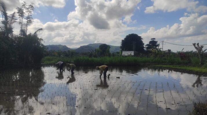 Meski Terik Matahari, Babinsa Kamasan Terus Dampingi Petani Tanam Padi
