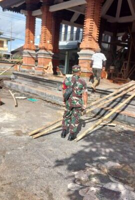 Bangli – Wujud nyata peran TNI di tengah masyarakat kembali ditunjukkan Babinsa Kelurahan Bebalang, Koramil 01/Bangli, Kodim 1626/Bangli, Kopda I Nengah Sudarma, saat melaksanakan
