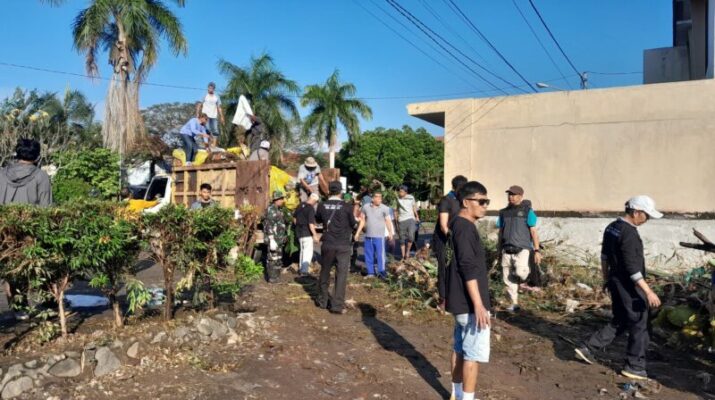 Mataram, NTB – Sejumlah relawan yang terdiri dari personel TNI, Pemerintah Kota (Pemkot) Mataram, komunitas lingkungan, serta warga setempat bahu-membahu membersihkan bantaran Sungai Kali
