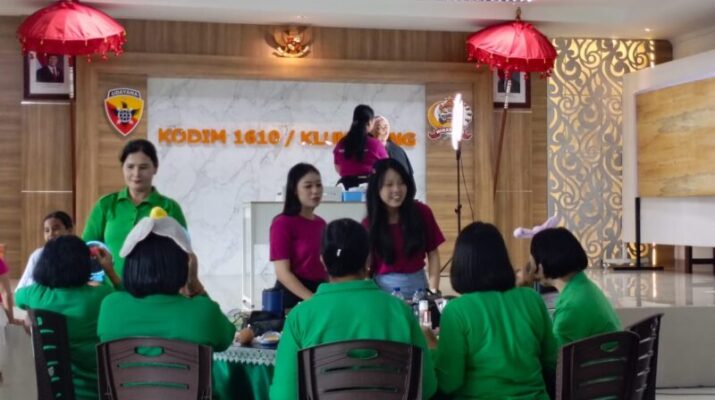 Klungkung,- Persit KCK Cabang XXXIII Kodim 1610/Klungkung menggelar kegiatan pelatihan tata rias wajah ( Beauty Class ) di Aula Kodim 1610/Klungkung, Kelurahan Semarapura Kaja,