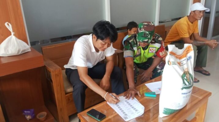 Babinsa Bersama Perangkat Desa Singapadu Awasi Langsung Penyaluran 900 Kg Beras CBP