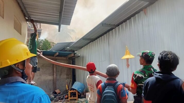 Sape, 16 Juli 2025 — Sebuah kebakaran dahsyat menghanguskan satu unit bangunan gudang barang elektronik dan material bangunan di Dusun Nggaro Lembo RT 06