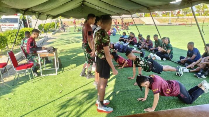 Belu – Satgas Yonif 741/GN bina fisik Kadet Mahasiswa Unhan RI Ben Mboi di Kabupaten Belu siap mengikuti seleksi menjadi Prajurit TNI. Sabtu (19/07/2025).
