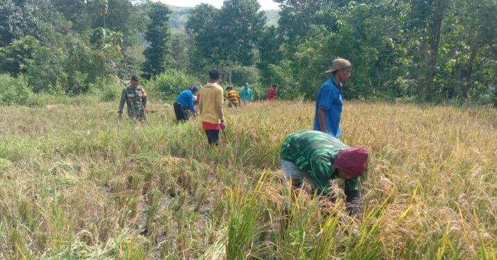 Gotong Royong Panen Padi, Babinsa Tabundung Dampingi Petani di Sawah