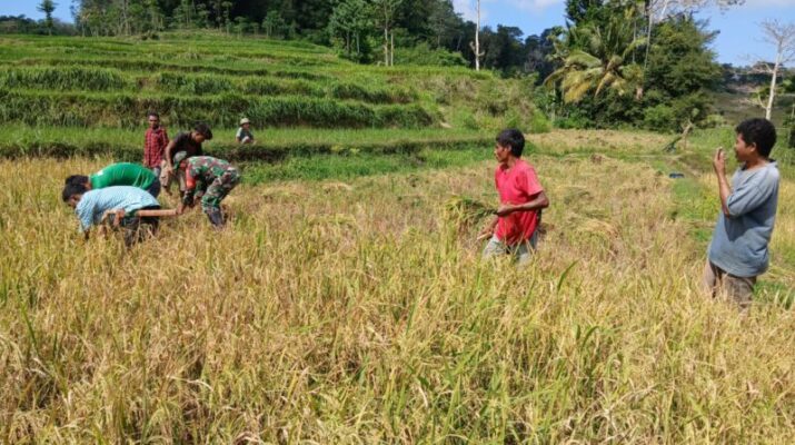 Babinsa Kabukarudi Dampingi Warga Panen Padi, Wujudkan Ketahanan Pangan