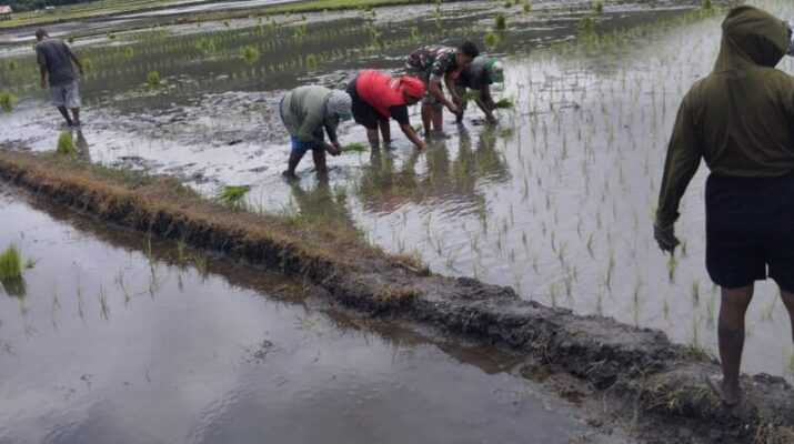 Kemanunggalan TNI-Rakyat Terwujud Lewat Pendampingan Penanaman Padi di Ende