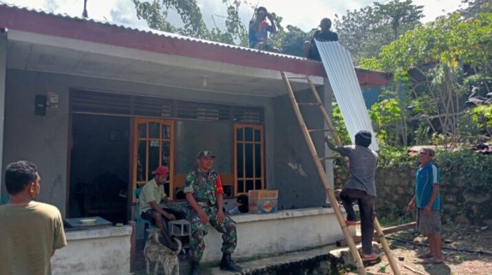 Babinsa Ende Aktif Ikut Serta dalam Pembangunan Fasilitas Ibadah di Desa Raaporendu