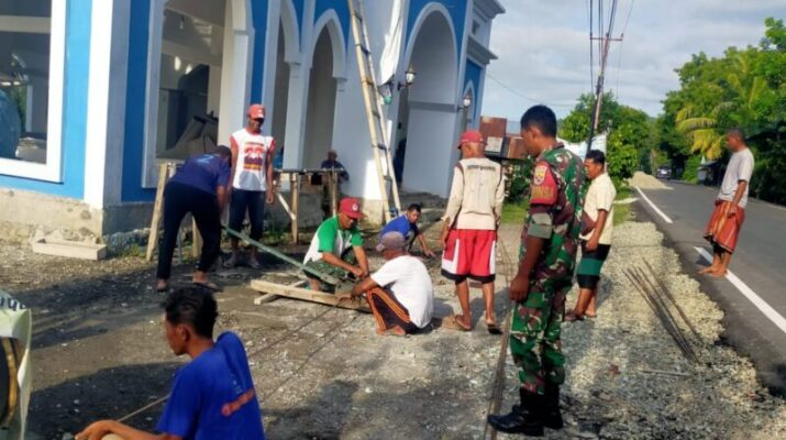 Ende – Babinsa Koramil 1602-01/Ende melaksanakan kegiatan karya bhakti dengan bergotong royong membangun masjid di Dusun Basa Kota Kori, Desa Raaporendu, Kecamatan Nangapanda, Kabupaten