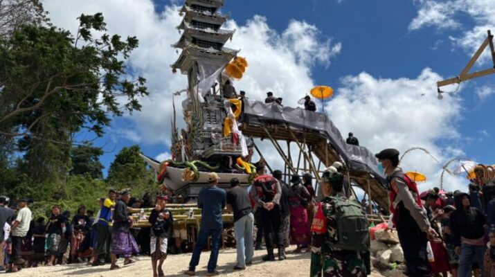 Klungkung,- Puluhan aparat keamanan, TNI dan Polri serta pecalang tampak sigap dan siaga memberikan pelayanan pengamanan pada puncak upacara keagamaan pitra yadnya ngaben masal