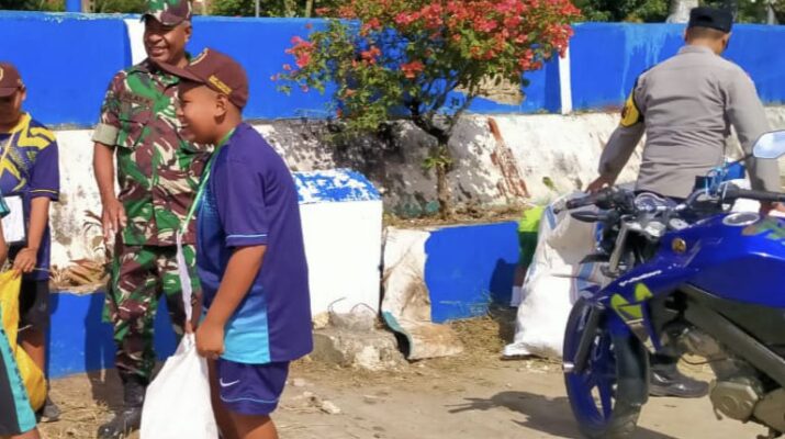SUMBA BARAT – Sebagai bentuk kepedulian terhadap kebersihan lingkungan dan pembentukan karakter generasi muda, Babinsa Koramil 1613-01/Loli, Sertu Silas Kikhau, bersama Bhabinkamtibmas dan siswa-siswi