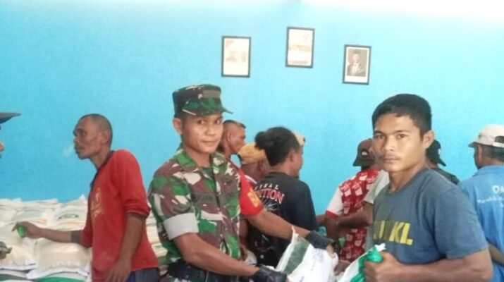 Bersama Warga, Babinsa Kawal Penyaluran 179 Paket Beras Bantuan di Reok Barat