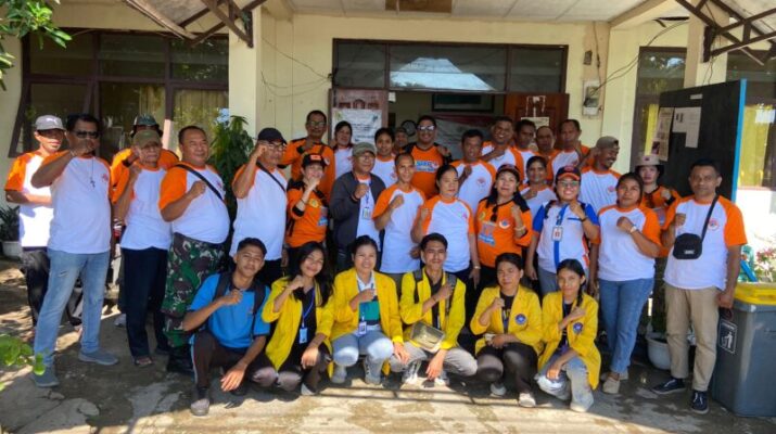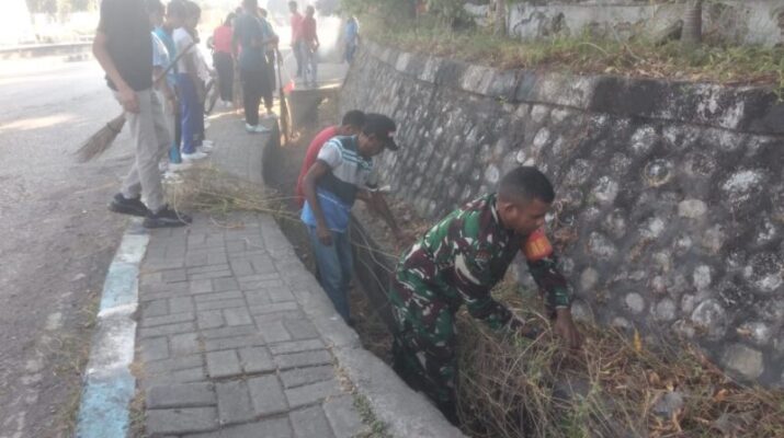 NTT-KUPANG, — Babinsa Kelurahan Merdeka Koramil 1604-01/Kupang, Sertu Soleman Missa, melaksanakan kegiatan kerja bakti bersama ASN Perpustakaan Provinsi dan para siswa SMK yang sedang