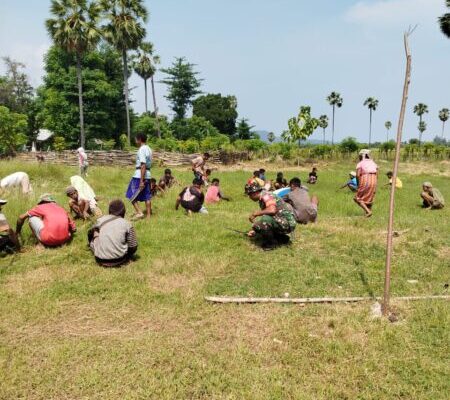 NTT-KUPANG, — Dalam rangka mempererat kemanunggalan TNI dan rakyat, Babinsa Desa Kolabe Koramil 1604-03/Naikliu, Serda Deki Christian Tamelan, melaksanakan kegiatan karya bakti bersama masyarakat