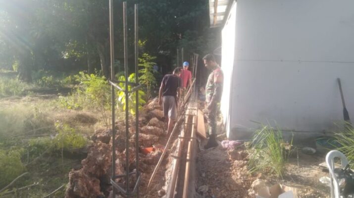 Rote Ndao – Babinsa koramil 03/Batutua Koptu Edi Molo Kodim 1627/Rote Ndao melaksanakan kegiatan membantu masyarakat membuat pondasi rumah milik Bapak Meki Bessi di