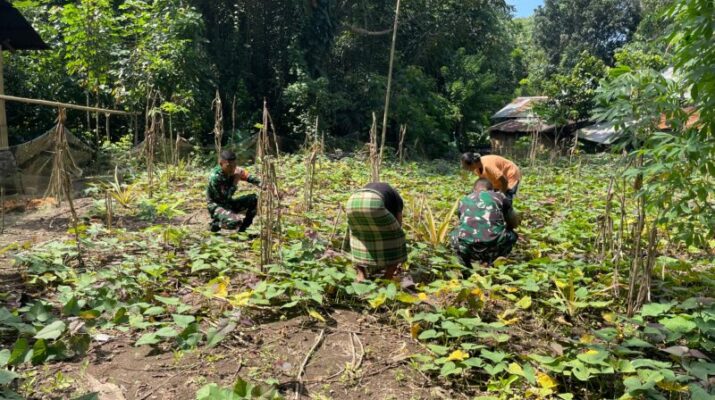 Ende, Babinsa Koramil 1602-01/Ende, Kopda Faisal Idrus bersama Pratu Taufik Muhammad, melaksanakan kegiatan ketahanan pangan (Hanpangan), komunikasi sosial (Komsos), dan pengamanan wilayah (Pamwil) di