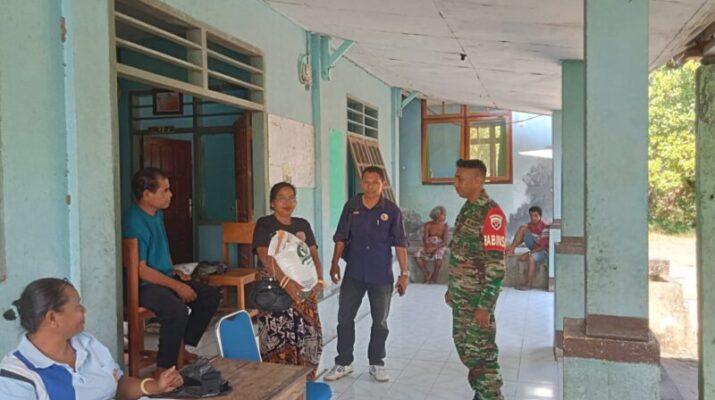 Ende, Dalam rangka memperkuat kemanunggalan TNI dengan rakyat, Babinsa Koramil 1602-02/Wolowaru, Serda Yosef Ati, melaksanakan kegiatan karya bakti, komunikasi sosial (Komsos), dan pengamanan wilayah