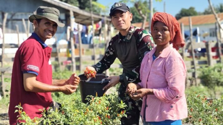 Malaka – Pos Motamasin Satgas Yonif 741/GN membantu panen cabai masyarakat Dusun Metamauk, Desa Alas Selatan, Kabupaten Malaka. Sabtu (26/07/2025). Kegiatan panen ini dipimpin