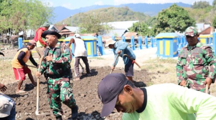 NTB – Sumbawa Besar– Semangat gotong royong kembali tergambar dalam kegiatan fisik TMMD ke-125 Kodim 1607/Sumbawa di Desa Kalabeso, Kecamatan Buer. Kali ini, Satgas
