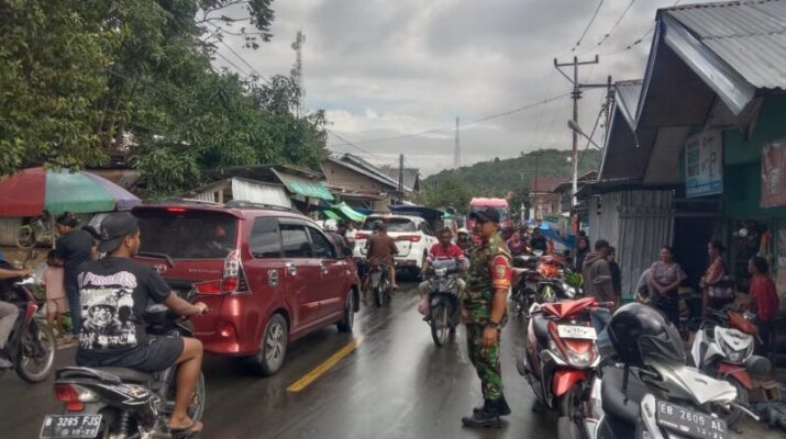 Ende, Babinsa Koramil 1602-01/Ende, Kopda Faisal Idrus, bersama Bhabinkamtibmas melaksanakan kegiatan monitoring, komunikasi sosial (Komsos), dan pengamanan wilayah (Pamwil) di Pasar Mingguan Nangapanda, Kelurahan