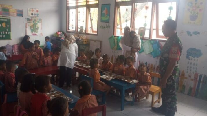 Babinsa Layani Pendampingan Pembagian MBG, Dukung Nutrisi Anak Sekolah di Bima