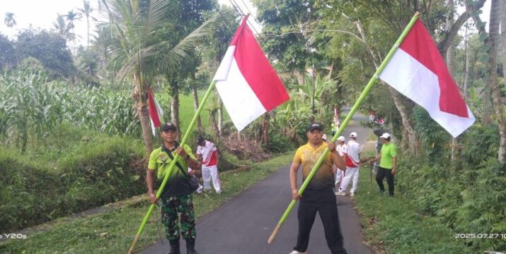Semarak HUT Kemerdekaan RI ke-80, Babinsa 1623-01/Karangasem bersama Perbekel dan staf Desa pasang bendera merah putih.