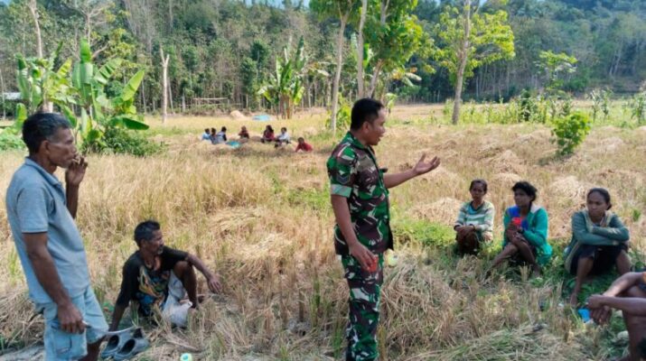SUMBA BARAT – Dalam rangka mendukung program ketahanan pangan nasional serta memperkuat sinergitas dengan masyarakat, Babinsa Koramil 02/Walakaka Kodim 1613/Sumba Barat, Serka Ramli melaksanakan