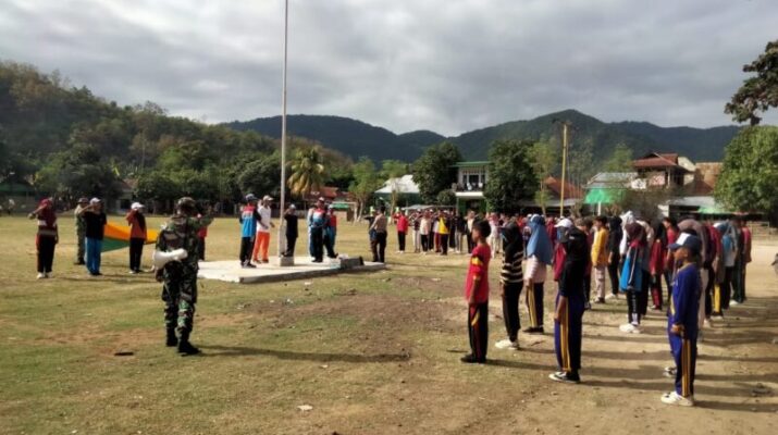 NTT- Sumba Barat Daya/ Babinsa Koramil 01/Laratama Kodim 1629/SBD Sertu Muhidin, secara intensif melatih calon Pasukan Pengibar Bendera (Paskibra) untuk tingkat Kecamatan di lapangan