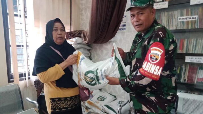 Lembata – Babinsa Koramil 1624-07/Nagawutung Praka Marshal Yudha Prasetya melaksanakan pendampingan dan pengawasan kegiatan penyaluran beras bantuan pangan Cadangan Beras Pemerintah atau CBP bulan