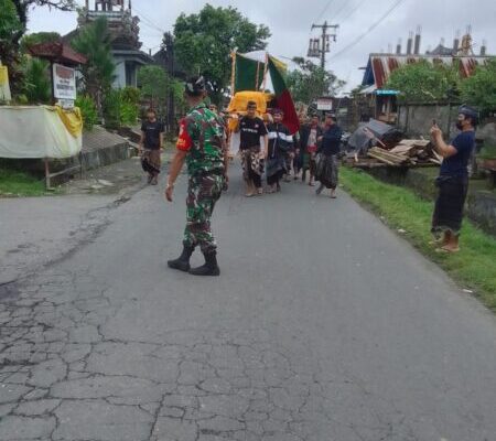 Babinsa Tegallalang Tunjukkan Kepedulian Lewat Pengamanan Pemakaman Adat