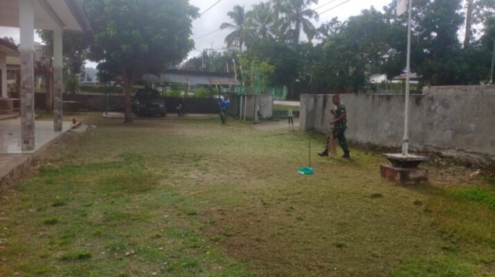 SUMBA BARAT – Dalam rangka menjaga kebersihan dan kerapian lingkungan satuan, anggota Koramil 01/Loli Kodim 1613/Sumba Barat melaksanakan kegiatan pembersihan pangkalan di Makoramil yang