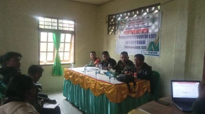 NTT-SIKKA Babinsa Desa Rubit, Serka Gabrielus Mariyanto dari Koramil 1603-04/Kewapante, menghadiri acara Musyawarah Desa untuk menetapkan APBDes Perubahan Tahun Anggaran 2025 di Aula Sekretariat