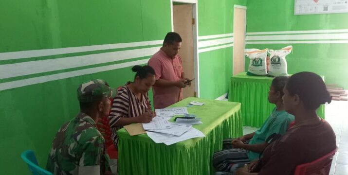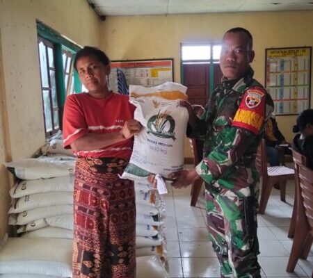 Buyasuri, Lembata – Babinsa Koramil 1624-04/Omesuri, Serda Julkiflin, melaksanakan pendampingan dan pemantauan dalam kegiatan penyaluran beras bantuan pangan tahun 2025 kepada warga masyarakat di