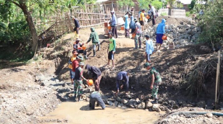 NTB – Sumbawa Besar – Personel Satuan Tugas TNI Manunggal Membangun Desa (TMMD) ke-125 Kodim 1607/Sumbawa terus menunjukkan dedikasi tinggi dalam membangun infrastruktur desa.