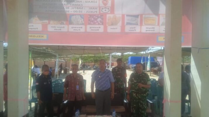 Flotim – Babinsa Koramil 1624-02/Adonara, Pratu Fernanda Tasrip, melaksanakan kegiatan monitoring wilayah dan bersama-sama dengan Babinkamtibmas memantau kegiatan Gerakan Pangan Murah di Desa Lamahala,