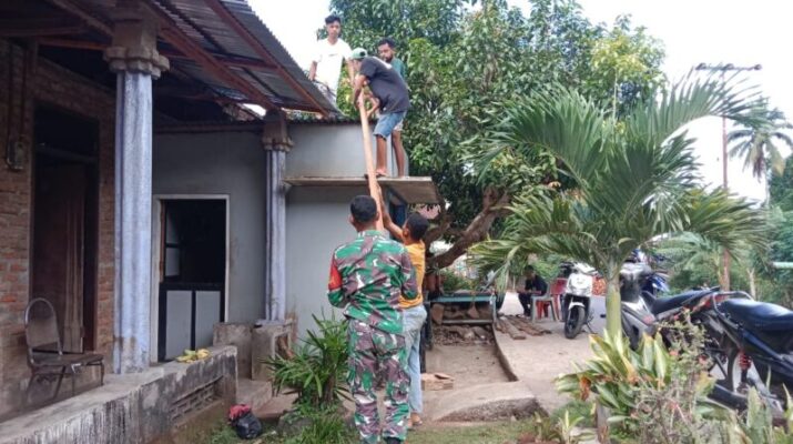 Babinsa Bantu Perbaiki Rumah Warga