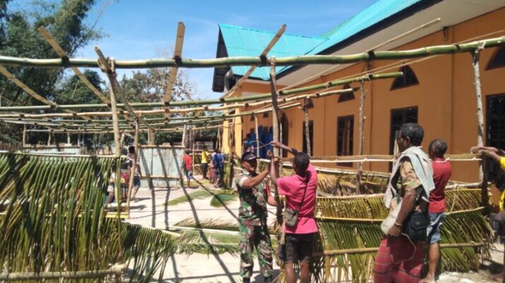 Gotong Royong Babinsa Bitobe Persiapkan Kunker Bupati Kupang
