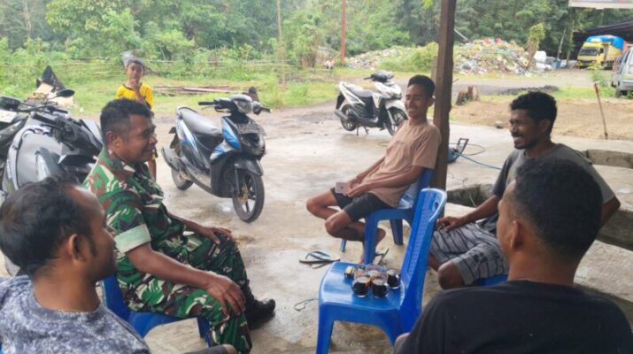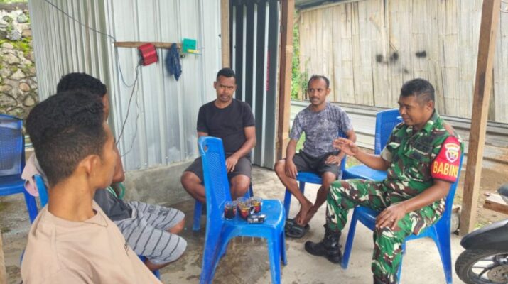 Ende, Serka Piter Kase, Babinsa Koramil 1602-01/Ende, melakukan kegiatan Komunikasi Sosial (Komsos) dan Pengamanan Wilayah (Pamwil) di Desa Riaraja, Kecamatan Ende, Kabupaten Ende pada