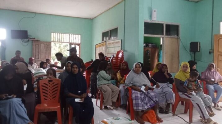 Flotim – Babinsa Koramil 1624-01/Adonara, Pratu Fernanda Tasrip, melaksanakan kegiatan komunikasi sosial dan pemantauan penerimaan bantuan pangan/pembagian beras Bulog yang di laksanakan di Kantor