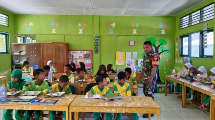 NTT – Sumba Timur.Untuk menyukseskan program nasional Makan Bergizi Gratis (MBG), Babinsa Koramil 05/Waingapu jajaran Kodim 1601/Sumba Timur, Serka KB. Nggeding,Sertu M. Ali Sertu